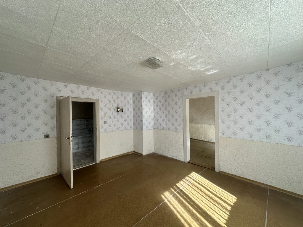 Das Gebäude befindet sich in einem sanierungsbedürftigen Zustand, was bewusstes Gestalten und umfassende Modernisierung nach eigenen Vorstellungen ermöglicht. Besonders hervorzuheben ist der großzügige Gartenbereich vor dem Haus, der viel Platz für Erholung, Spiel oder gärtnerische Gestaltungsideen bietet. Ein Schuppen ergänzt das Angebot sinnvoll.